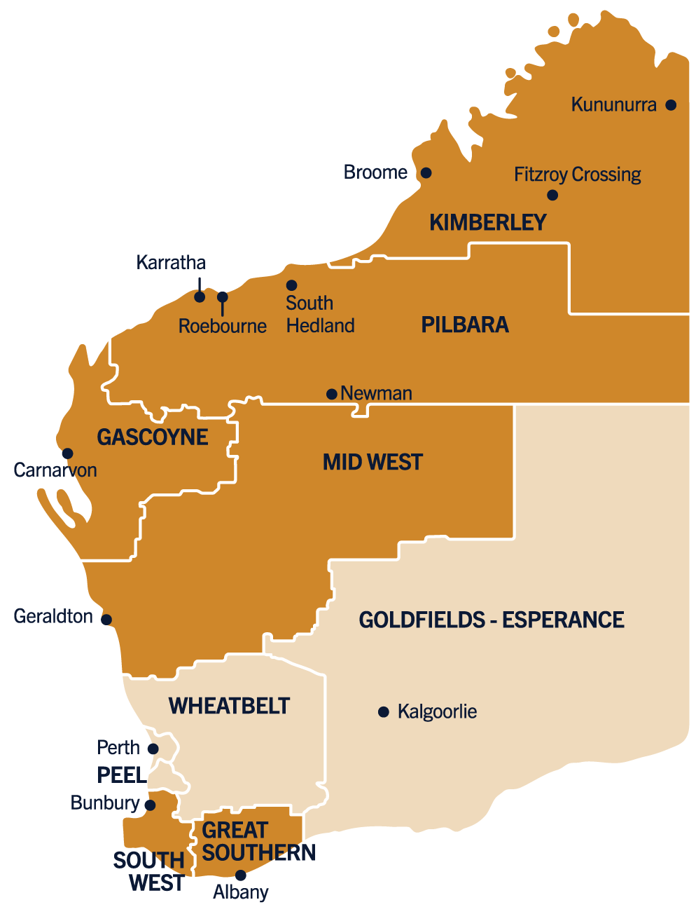 Pilbara Region Kimberley Region Mid West Region South West Region Great Southern Region Gascoyne Region